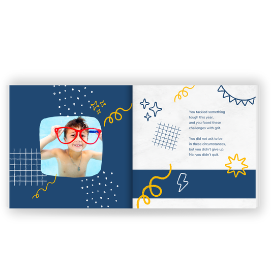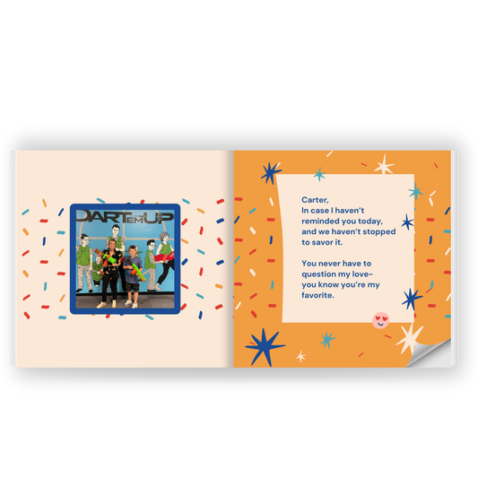 Our books feature 10 personal photos, plus the child and gift-giver's names, and other fun customizations.
